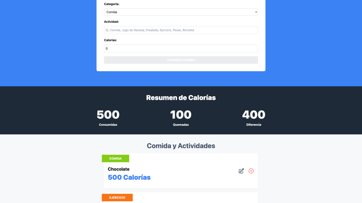 This project is a calorie tracker built using React with Vite, designed to help users monitor their daily caloric intake and expenditure. Users can log the calories consumed from food and calories burned through exercise. The application calculates and displays the difference between consumed and burned calories, providing an overall net caloric balance. The app features efficient state management to handle user inputs, and reusable components are implemented for flexibility and code reusability. The interface is intuitive, allowing users to easily track and manage their calorie data.