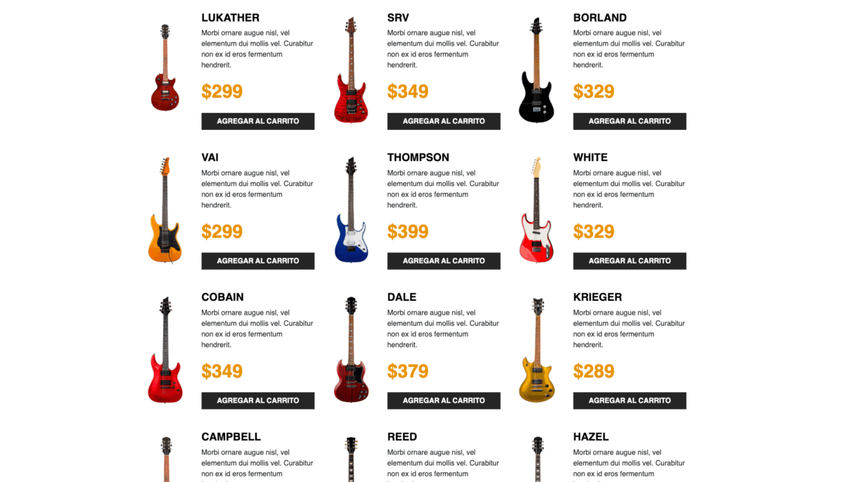 GuitarLA is a mini e-commerce application developed with React with Vite, focused on showcasing and selling guitars. Users can browse a catalog of products and add selected guitars to a shopping cart. The cart supports dynamic quantity adjustments and product removal, with real-time updates to the total price. The application uses component-based architecture and state management to handle cart operations efficiently, providing a smooth and responsive user experience.